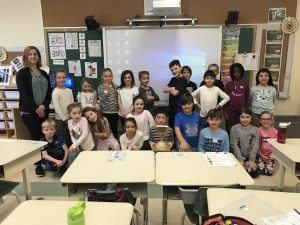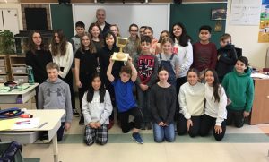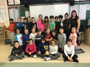 Afin de conscientiser les jeunes à rendre notre école agréable à vivre pour tous, une élève de 4e année nous propose un concours hebdomadaire qui consiste à faciliter les procédés de nettoyage du concierge en ramassant le plus possible avant la tournée de nettoyage du soir. De plus, cette élève créative a fabriqué un trophée qui circule dans les classes gagnantes à chaque semaine.